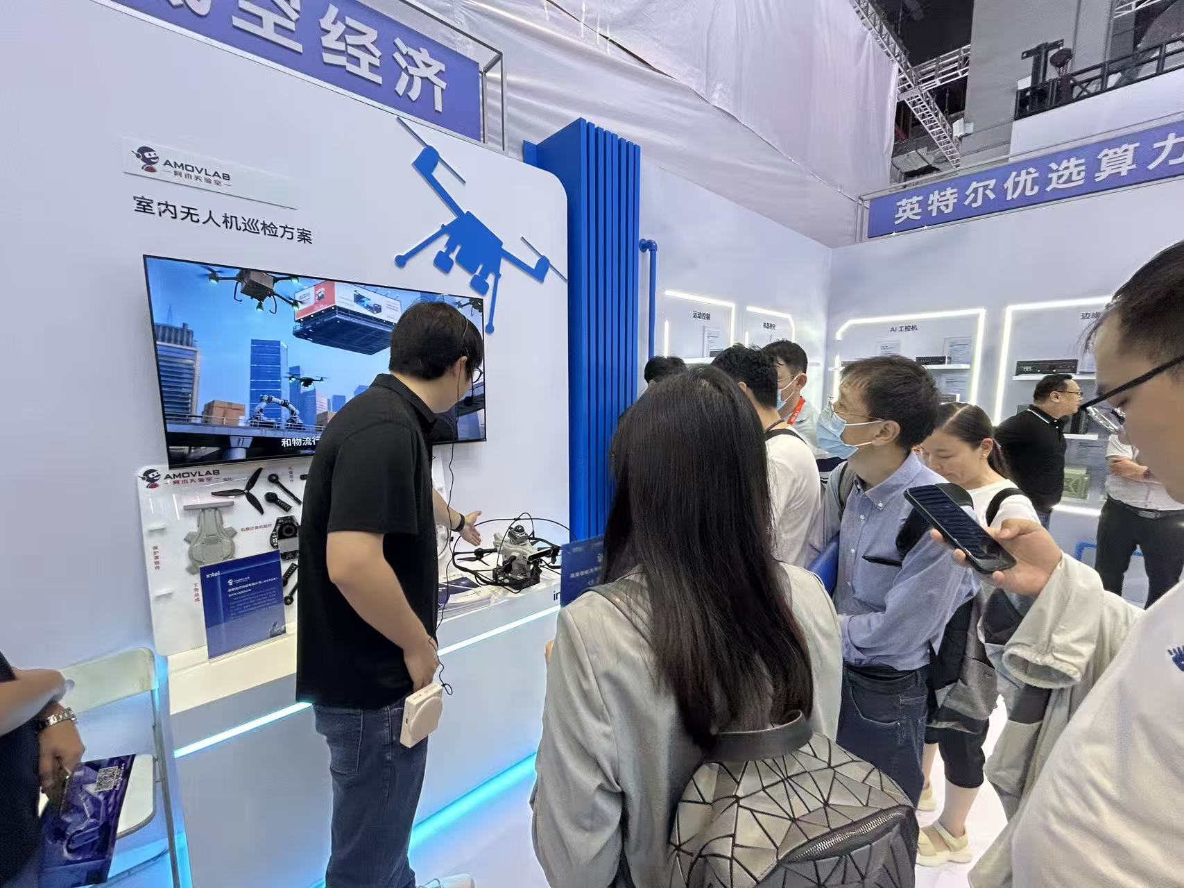 在本届工博会上英特尔携手阿木实验室SU17巡检无人机精彩亮相。SU17巡检无人机搭载Intel® Core™ Ultra处理器,现场展示了面向仓储/工厂场景的全流程巡检方案,吸引了众多专业观众驻足交流。