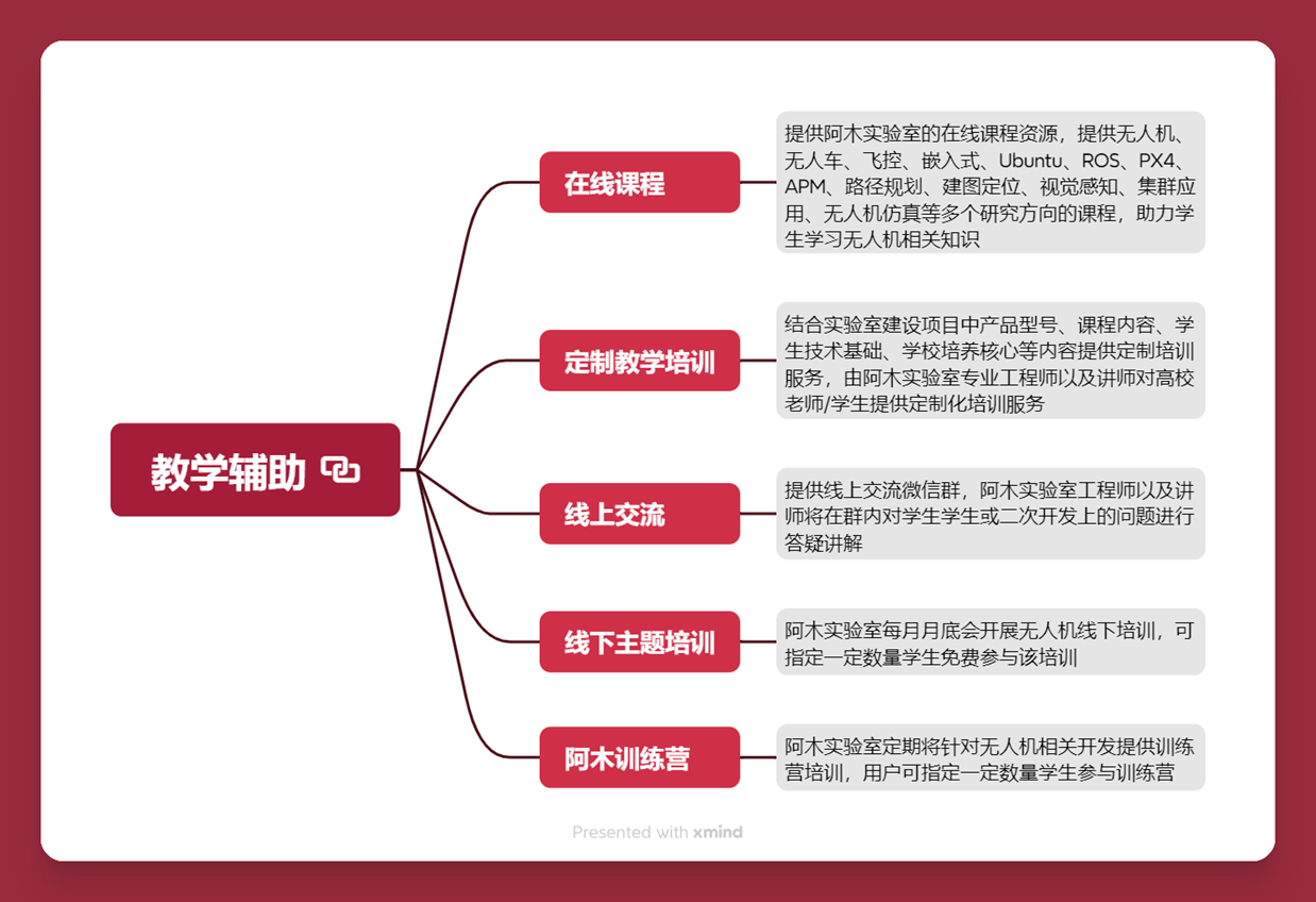 阿木实验室提供体系化的专业教学与培训服务,包括在线课程、定制化教学、线下实训与技术支持,全面保障高校推进教学与科研任务,帮助学生系统掌握无人机知识、开发技能与前沿技术应用能力。