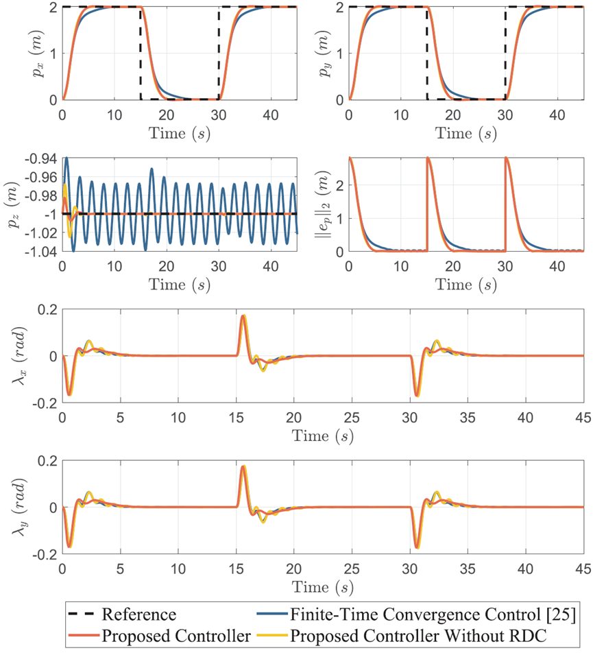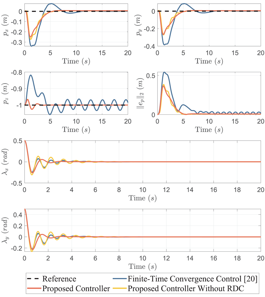 与有限时间收敛控制和未引入RDC的控制方法相比,所提出的控制方法在衰减摆动方面表现出明显的优势。